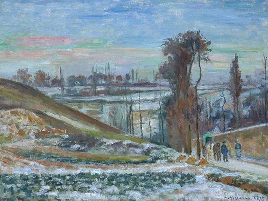 Snow effect at the Hermitage White Modern Wood Framed Art Print with Double Matting by Pissarro, Camille
