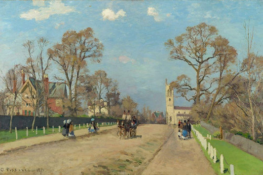 Bath Road, London White Modern Wood Framed Art Print with Double Matting by Pissarro, Camille