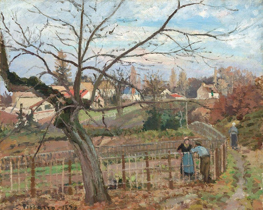 The Fence White Modern Wood Framed Art Print with Double Matting by Pissarro, Camille