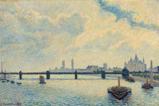 Charing Cross Bridge, London White Modern Wood Framed Art Print with Double Matting by Pissarro, Camille