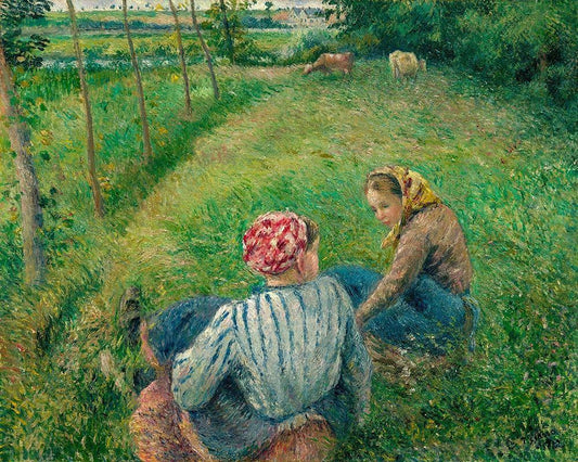 Young Peasant Girls Resting in the Fields near Pontoise White Modern Wood Framed Art Print with Double Matting by Pissarro, Camille
