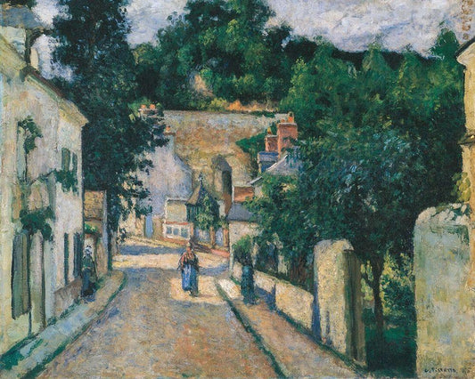Rue de L´Hermitage a Pontoise White Modern Wood Framed Art Print with Double Matting by Pissarro, Camille