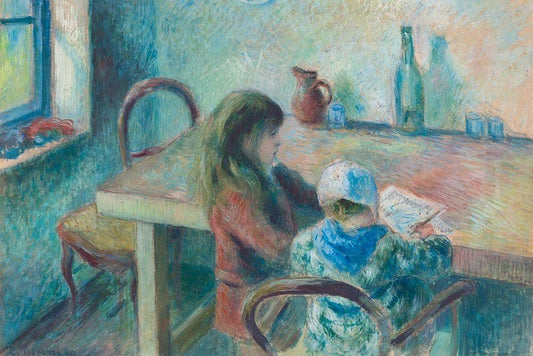 The Children White Modern Wood Framed Art Print with Double Matting by Pissarro, Camille