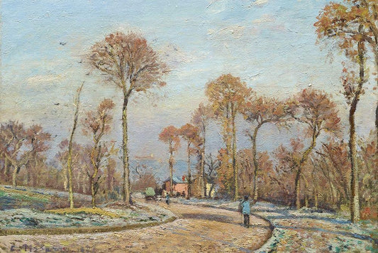 The Road to Versailles, Louveciennes, Morning Frost White Modern Wood Framed Art Print with Double Matting by Pissarro, Camille