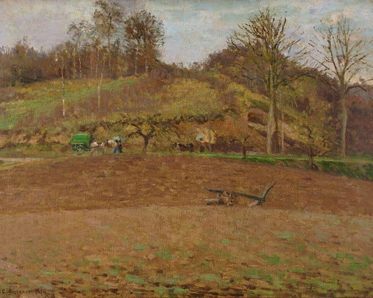 Ploughed land White Modern Wood Framed Art Print with Double Matting by Pissarro, Camille