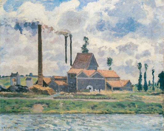 Factory at Saint-Ouen-lAumone White Modern Wood Framed Art Print with Double Matting by Pissarro, Camille
