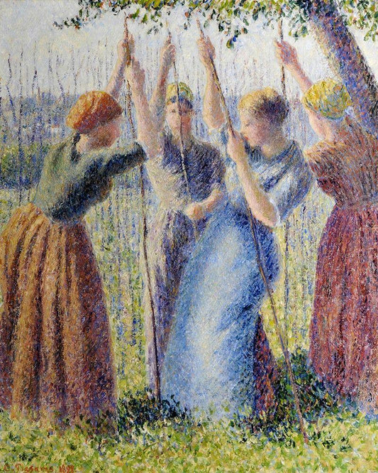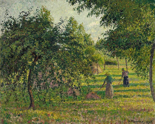 Apple trees and tedders, Eragny White Modern Wood Framed Art Print with Double Matting by Pissarro, Camille