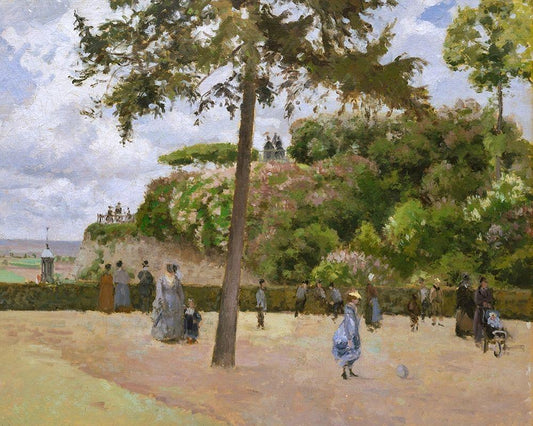 The Public Garden at Pontoise White Modern Wood Framed Art Print with Double Matting by Pissarro, Camille