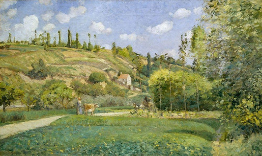 Cote des Grouettes, near Pontoise White Modern Wood Framed Art Print with Double Matting by Pissarro, Camille