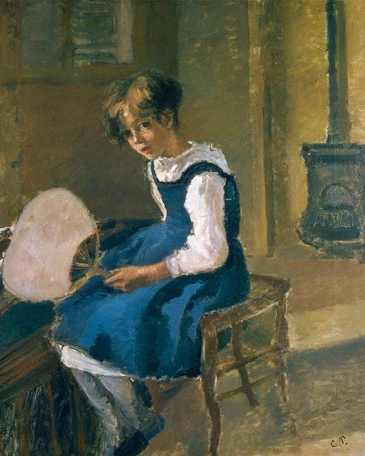 Jeanne Pissarro Called Minette Holding a Fan White Modern Wood Framed Art Print with Double Matting by Pissarro, Camille