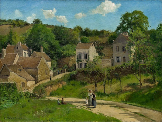 The Hermitage at Pontoise White Modern Wood Framed Art Print with Double Matting by Pissarro, Camille