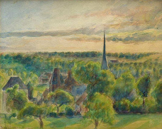 Landscape at Eragny White Modern Wood Framed Art Print with Double Matting by Pissarro, Camille