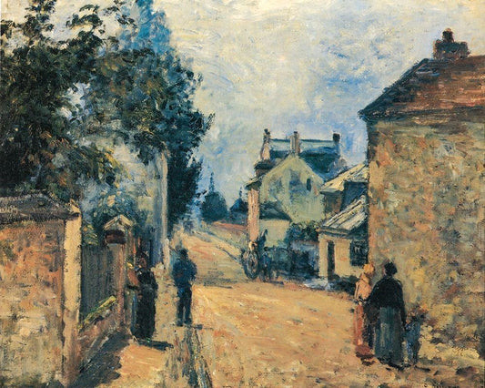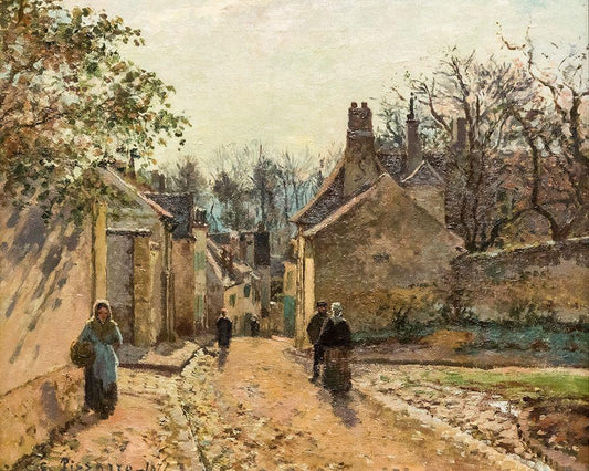 Voisins Street White Modern Wood Framed Art Print with Double Matting by Pissarro, Camille