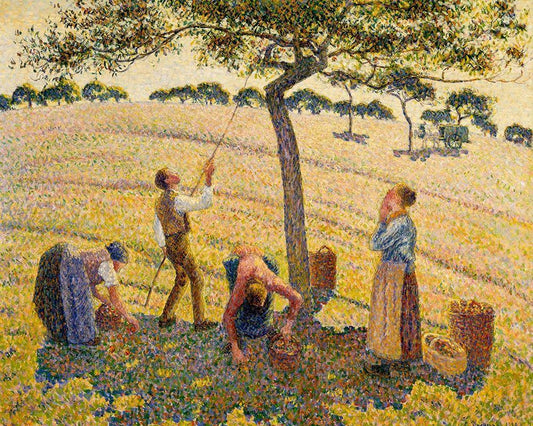 Apple harvest at Eragny White Modern Wood Framed Art Print with Double Matting by Pissarro, Camille