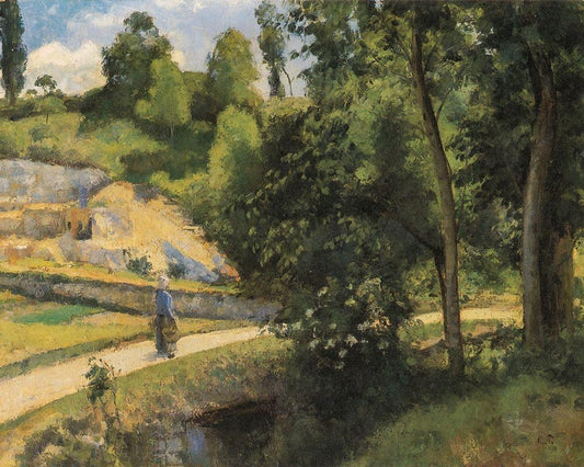 The Quarry, Pontoise White Modern Wood Framed Art Print with Double Matting by Pissarro, Camille