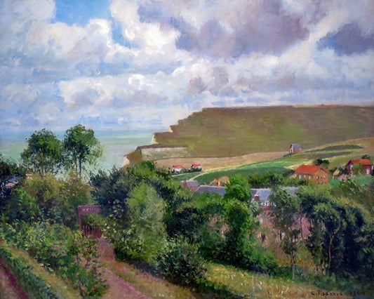 View of Berneval White Modern Wood Framed Art Print with Double Matting by Pissarro, Camille
