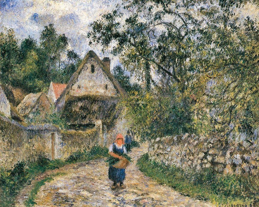 La Rue de L´Hermitage, Pontoise White Modern Wood Framed Art Print with Double Matting by Pissarro, Camille