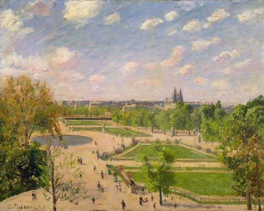 The Garden of the Tuileries on a Spring Morning White Modern Wood Framed Art Print with Double Matting by Pissarro, Camille