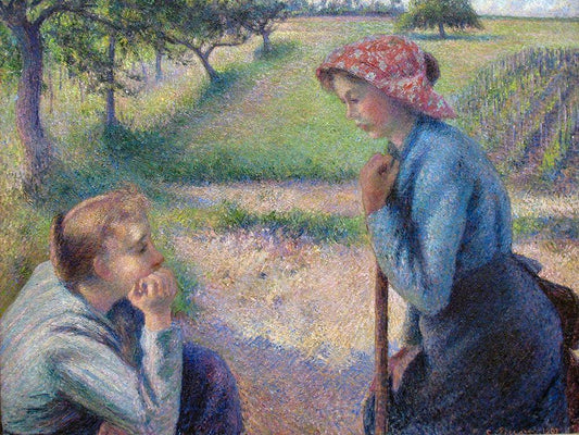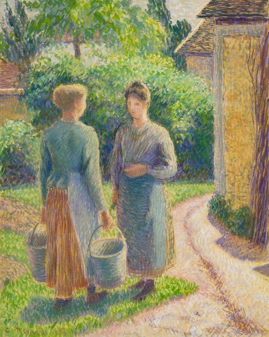 Two Women in a Garden White Modern Wood Framed Art Print with Double Matting by Pissarro, Camille