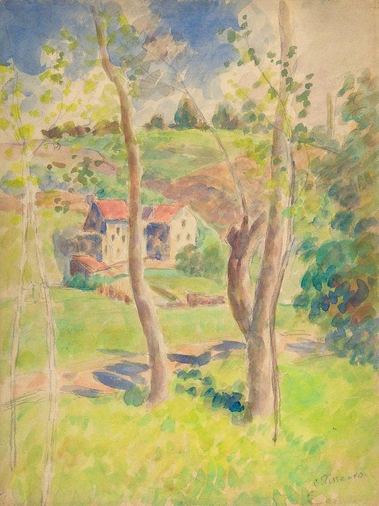 Landscape White Modern Wood Framed Art Print with Double Matting by Pissarro, Camille