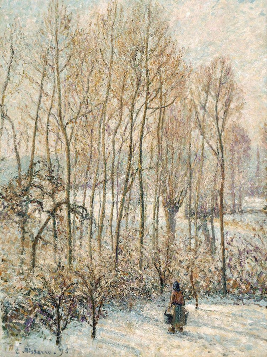 Morning Sunlight on the Snow, Eragny-sur-Epte White Modern Wood Framed Art Print with Double Matting by Pissarro, Camille