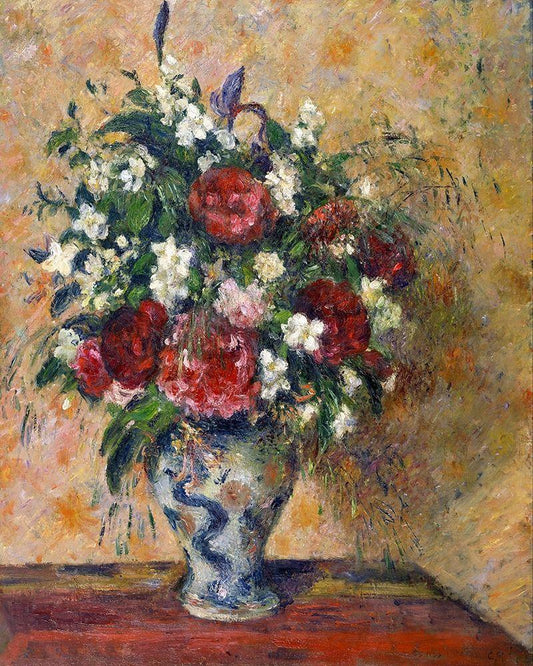 Still life with peonies and mock orange White Modern Wood Framed Art Print with Double Matting by Pissarro, Camille