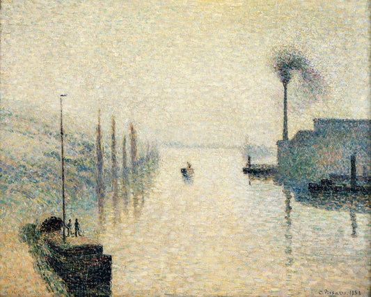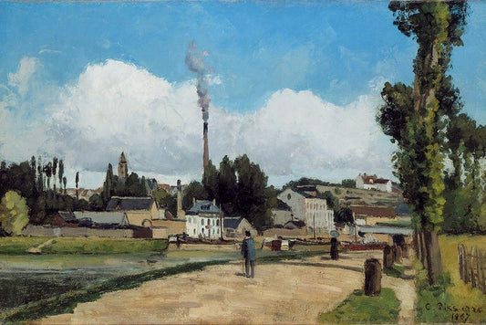 The Oise near Pontoise in Grey Weather White Modern Wood Framed Art Print with Double Matting by Pissarro, Camille
