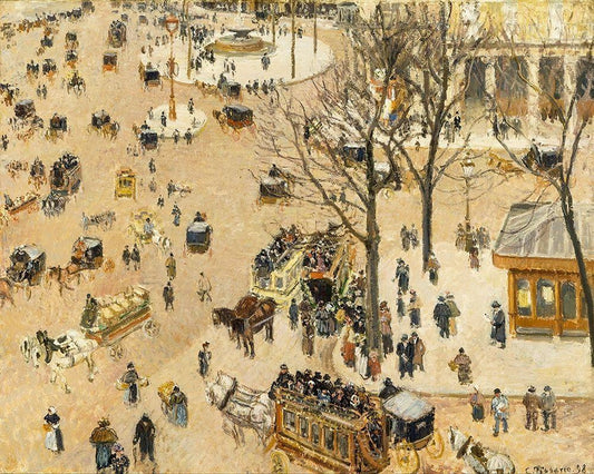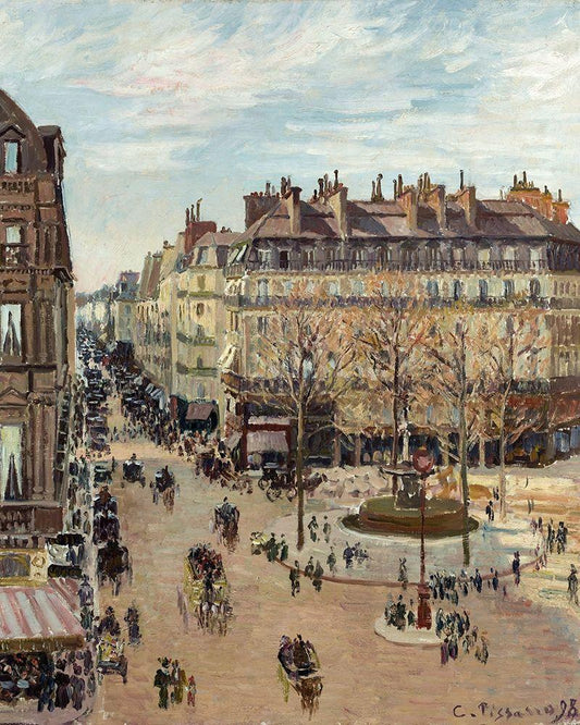 La Place due Theatre Francais White Modern Wood Framed Art Print with Double Matting by Pissarro, Camille
