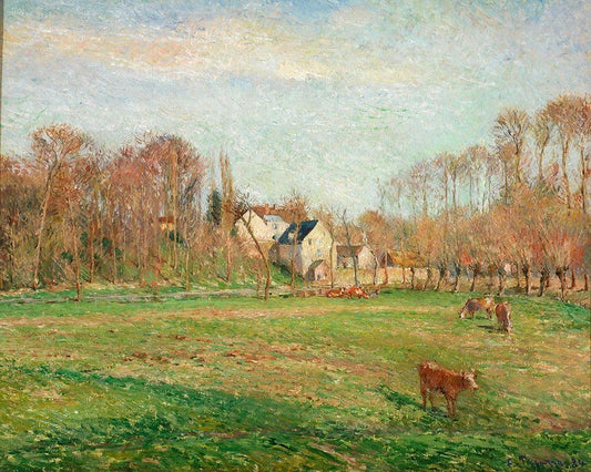 Landscape at Eragny White Modern Wood Framed Art Print with Double Matting by Pissarro, Camille