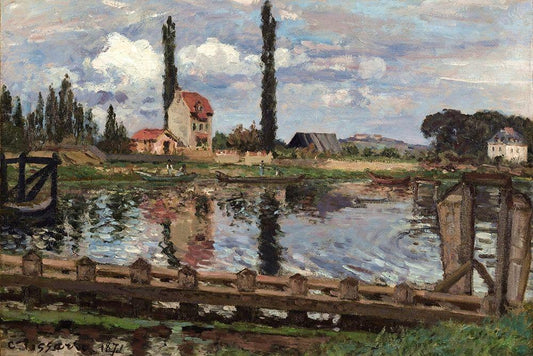 Banks of the Seine at Port Marly White Modern Wood Framed Art Print with Double Matting by Pissarro, Camille
