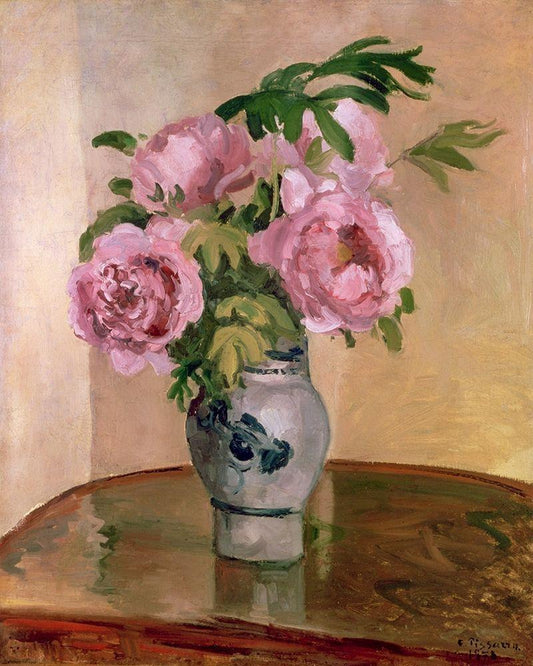 Bouquet of Pink Peonies White Modern Wood Framed Art Print with Double Matting by Pissarro, Camille