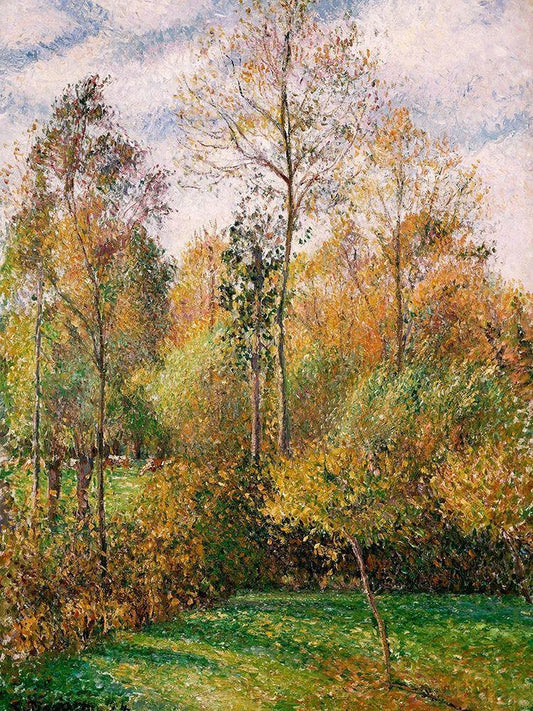 Automne, Peupliers, Eragny White Modern Wood Framed Art Print with Double Matting by Pissarro, Camille