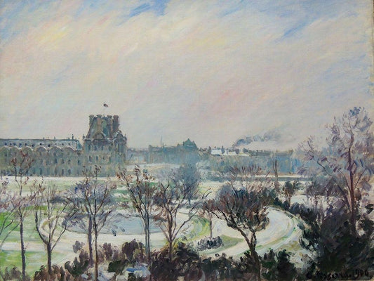 Tuileries Garden, snow effect White Modern Wood Framed Art Print with Double Matting by Pissarro, Camille