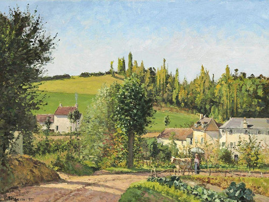 Landscape near Pontoise, the Auvers Road, 1881 White Modern Wood Framed Art Print with Double Matting by Pissarro, Camille