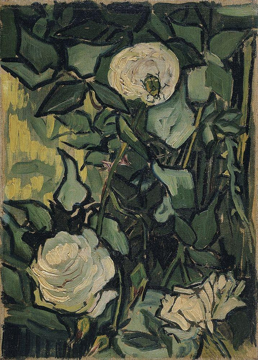 Roses White Modern Wood Framed Art Print with Double Matting by van Gogh, Vincent