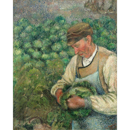The Gardener - Old Peasant with Cabbage Black Modern Wood Framed Art Print with Double Matting by Pissarro, Camille