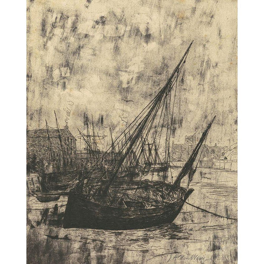 Boats at Peel Isle of Man Black Modern Wood Framed Art Print with Double Matting by Weir, J Alden