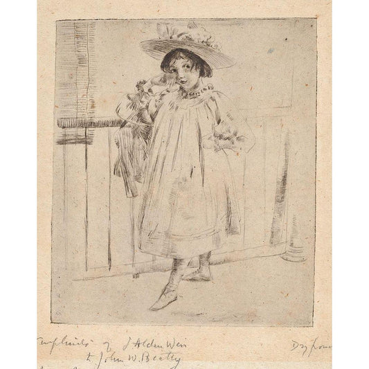 Young Girl with Large Hat Black Modern Wood Framed Art Print with Double Matting by Weir, J Alden