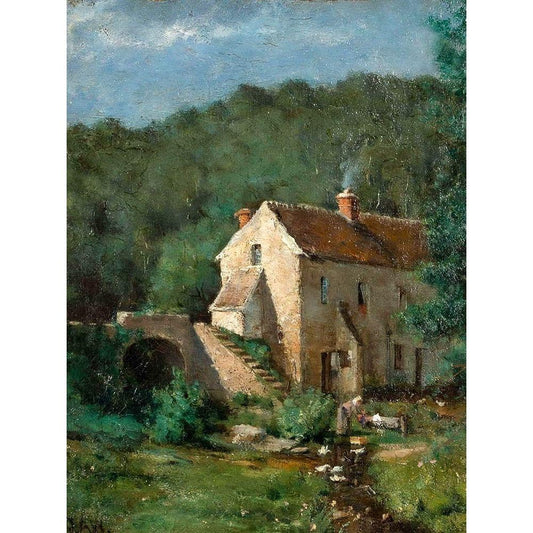 A French Homestead Black Modern Wood Framed Art Print with Double Matting by Weir, J Alden