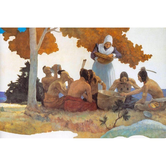 Thanksgiving with Indians Detail Black Modern Wood Framed Art Print with Double Matting by Wyeth, NC