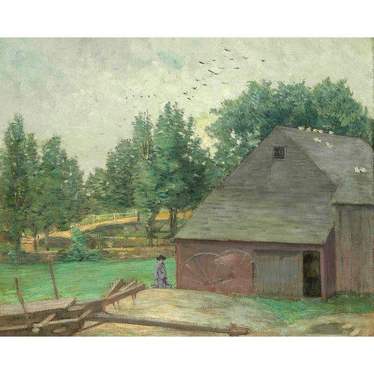 Summer in Connecticut. The Old Barn at Branchville Black Modern Wood Framed Art Print with Double Matting by Weir, J Alden