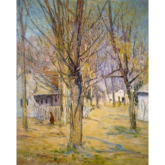 Connecticut Village-Going to School Black Modern Wood Framed Art Print with Double Matting by Weir, J Alden