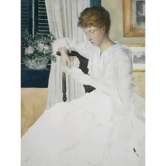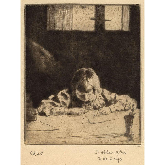 Anna Dwight Weir Reading a Letter Black Modern Wood Framed Art Print with Double Matting by Weir, J Alden