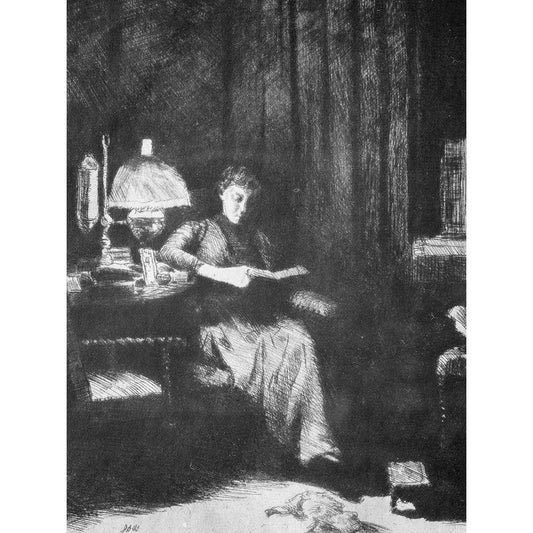 The Evening Lamp Black Modern Wood Framed Art Print with Double Matting by Weir, J Alden