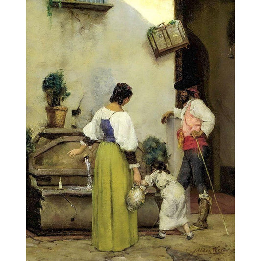At the Water Trough Black Modern Wood Framed Art Print with Double Matting by Weir, J Alden
