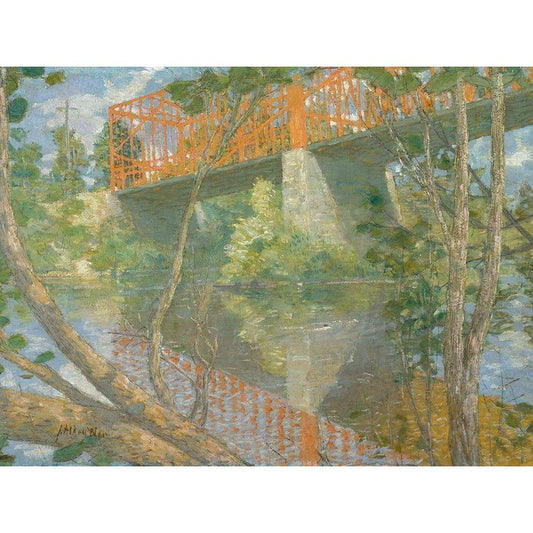 The Red Bridge Black Modern Wood Framed Art Print with Double Matting by Weir, J Alden