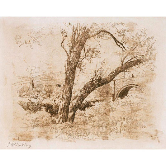 Bridge at Caracas Black Modern Wood Framed Art Print with Double Matting by Pissarro, Camille
