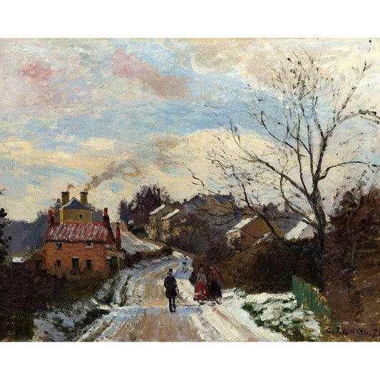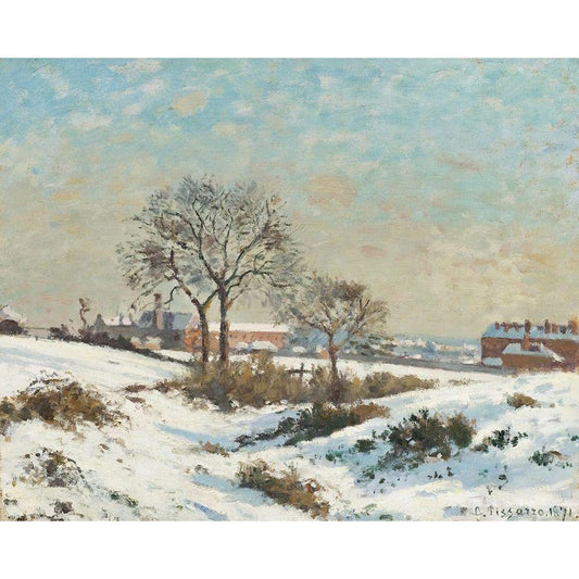 Snowy Landscape at South Norwood Black Modern Wood Framed Art Print with Double Matting by Pissarro, Camille