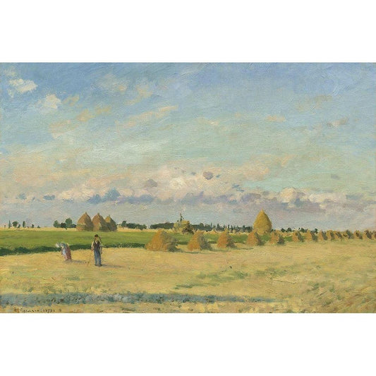Harvest Black Modern Wood Framed Art Print with Double Matting by Pissarro, Camille