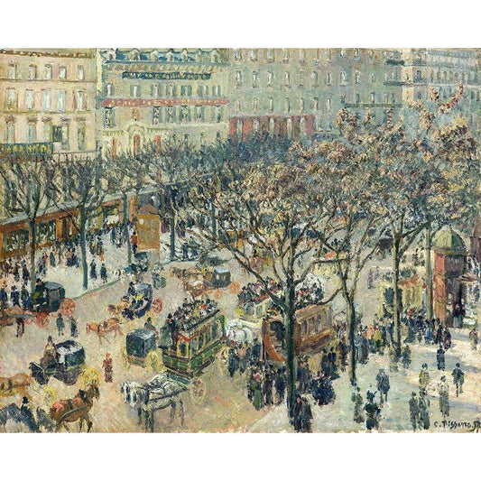 Boulevard des Italiens, Morning, Sunlight Black Modern Wood Framed Art Print with Double Matting by Pissarro, Camille